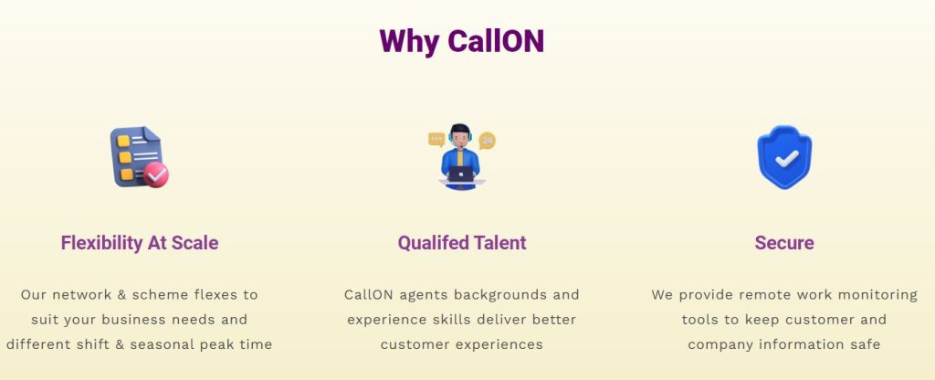 Konsultasikan kebutuhan Anda bersama tim ahli CallON. Hubungi nomor kontak CallON di (021) 5021 1001 untuk konsultasi lebih detail. Ini saatnya Anda tumbuh tanpa beban harus memikirkan divisi penunjang. Ini adalah saat Anda memaksimalkan core bisnis agar terus tumbuh dan berkembang.